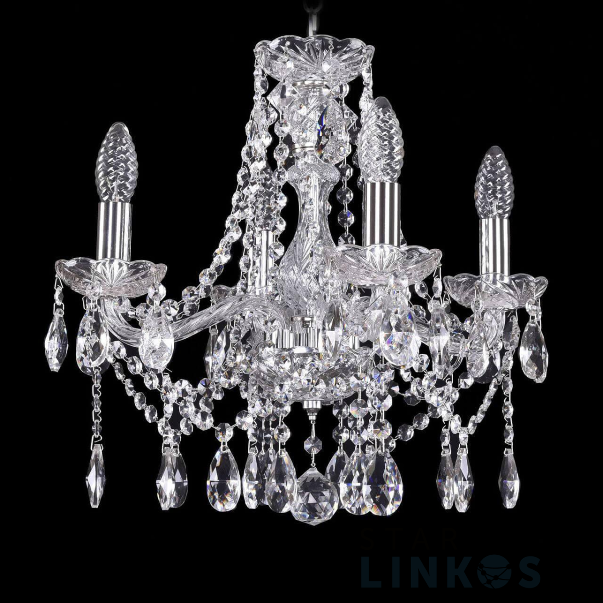 Поставщик рекомендует использовать лампы накаливания с цоколем E14 для освещения площади 8,9 м2. Подвесная люстра Bohemia Ivele 1413/4/141 Ni в классическом стиле используется в интерьере спальни с установкой на потолок.