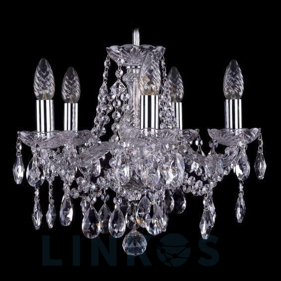 Поставщик рекомендует использовать лампы накаливания с цоколем E14 для освещения площади 11,1 м2. Подвесная люстра Bohemia Ivele 1413/5/141 Ni в классическом стиле используется в интерьере спальни с установкой на потолок.