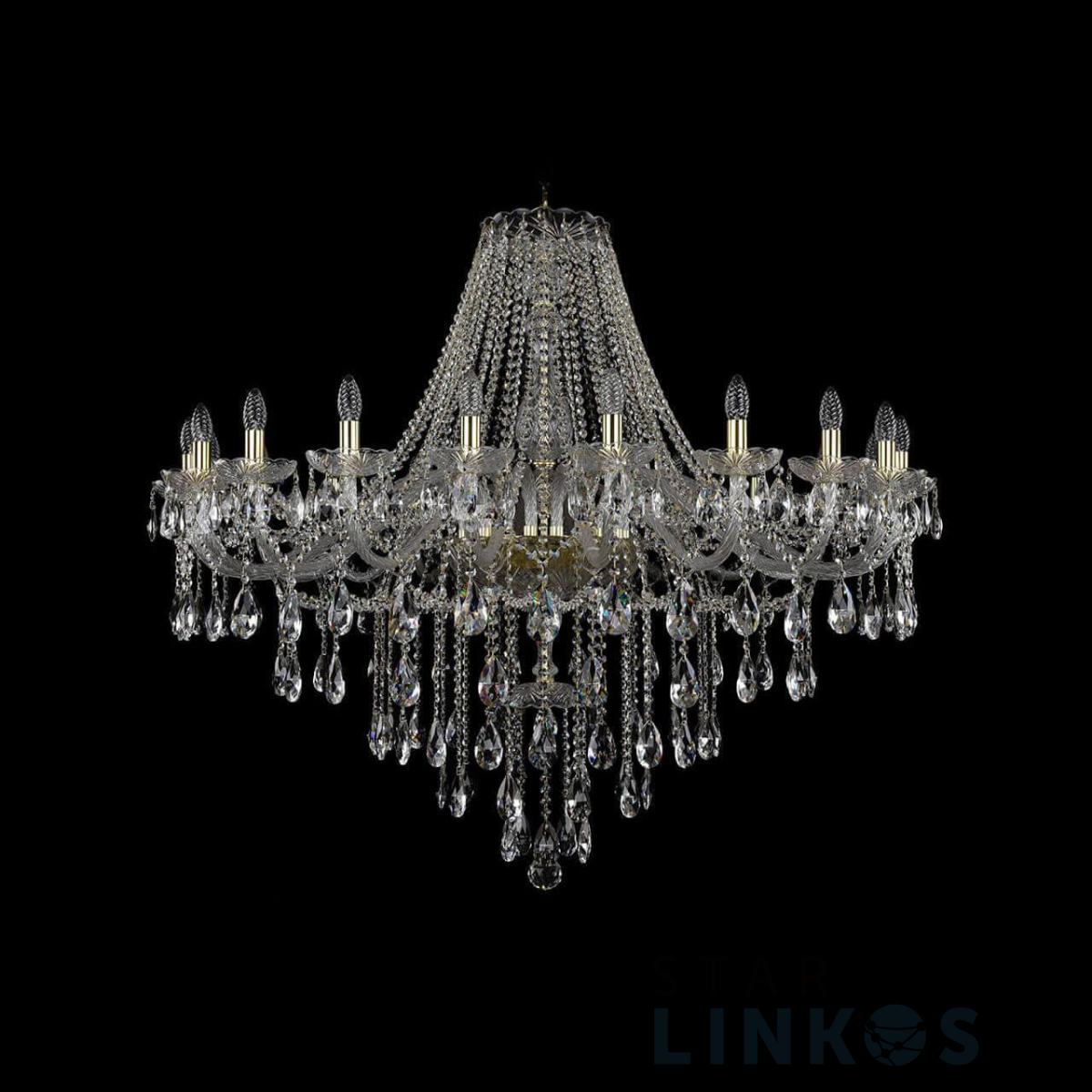 Поставщик рекомендует использовать лампы накаливания с цоколем E14 для освещения площади 44,4 м2. Подвесная люстра Bohemia Ivele 1415/20/460 G в классическом стиле используется в интерьере больших залов с установкой на потолок.