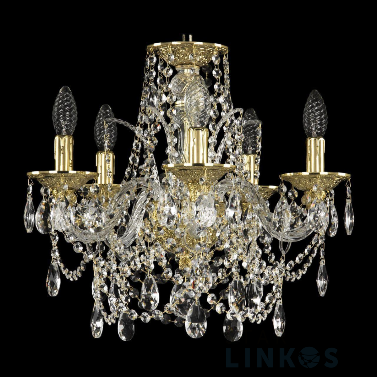 Поставщик рекомендует использовать лампы накаливания с цоколем E14 для освещения площади 14 м2. Подвесная люстра Bohemia Ivele 16111/5/141 G в классическом стиле используется в интерьере спальни с установкой на потолок.