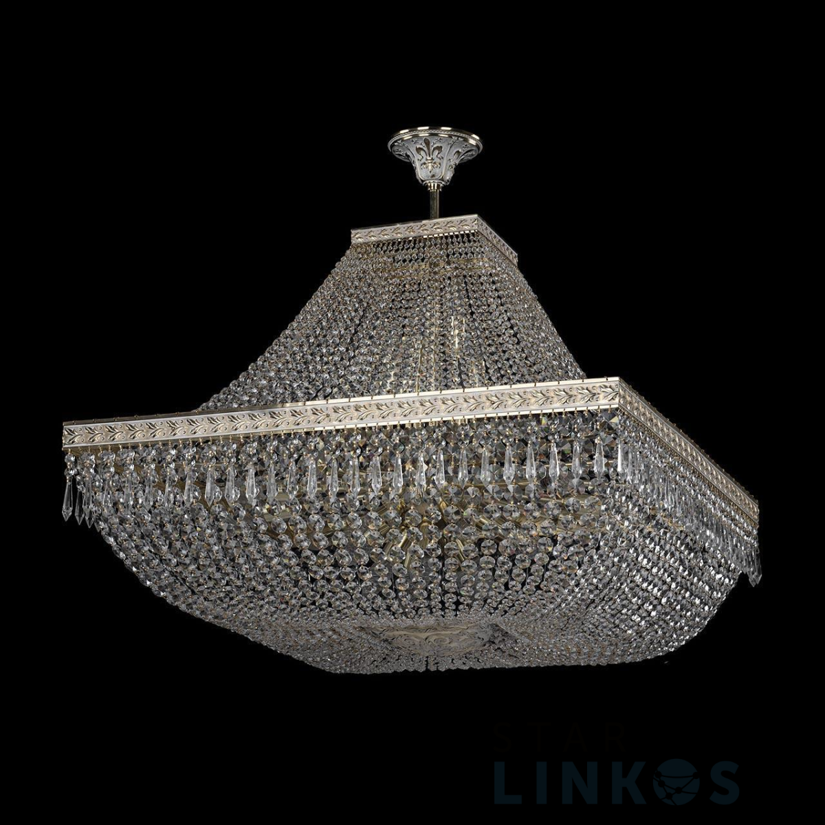 Поставщик рекомендует использовать лампы накаливания с цоколем E14 для освещения площади 48,9 м2. Подвесная люстра Bohemia Ivele 19012/H1/80IV GW в классическом стиле используется в интерьере больших залов с установкой на потолок.