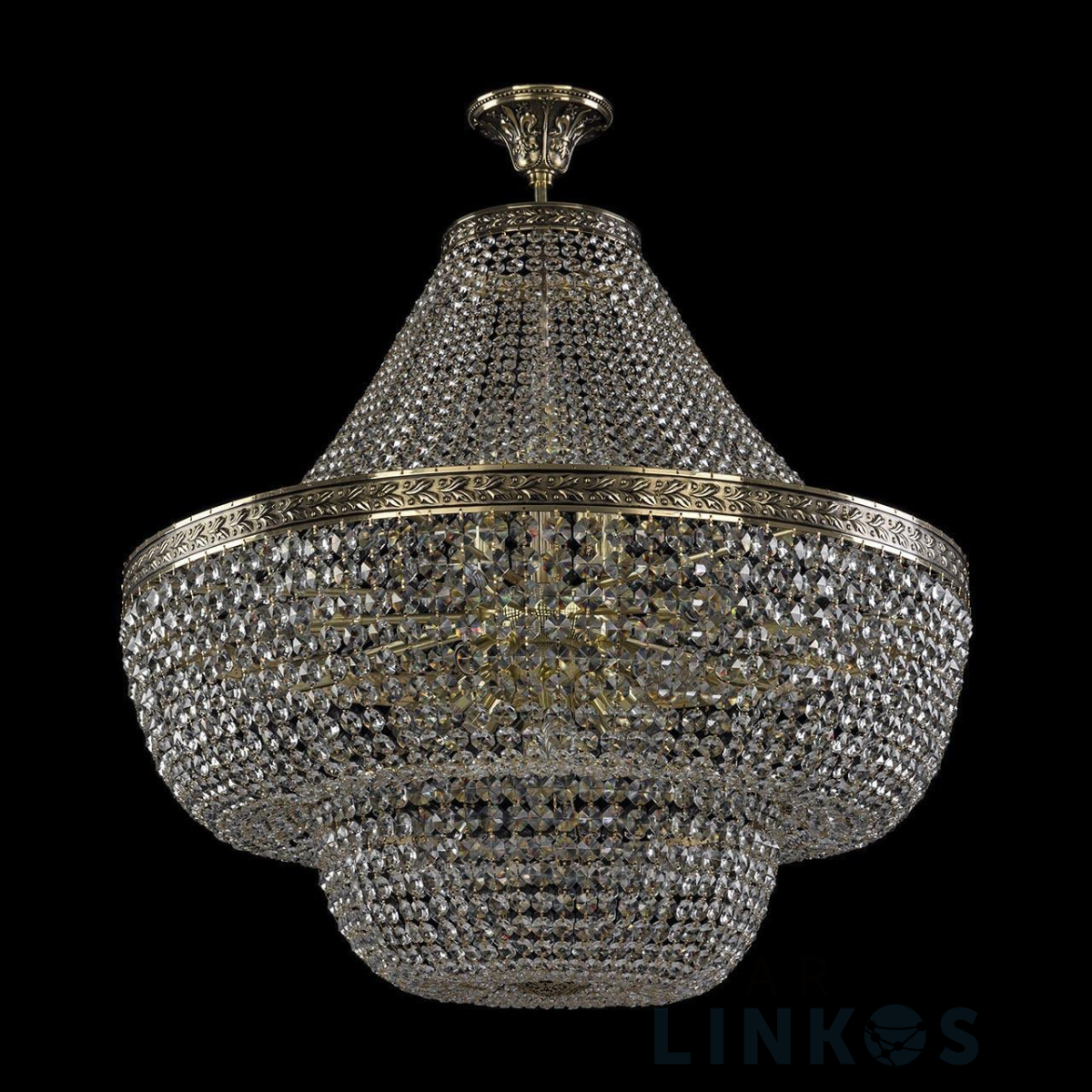Поставщик рекомендует использовать лампы накаливания с цоколем E14 для освещения площади 48,9 м2. Подвесная люстра Bohemia Ivele 19101/H1/80IV GB в классическом стиле используется в интерьере больших залов с установкой на потолок.