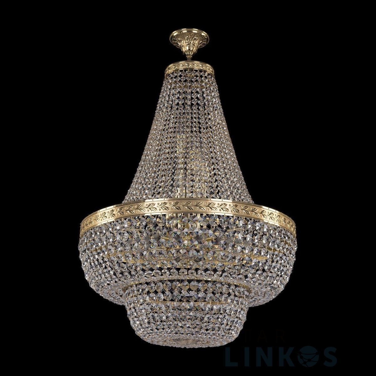 Поставщик рекомендует использовать лампы накаливания с цоколем E14 для освещения площади 33,3 м2. Подвесная люстра Bohemia Ivele 19101/H2/60IV G в классическом стиле используется в интерьере гостиной с установкой на потолок.