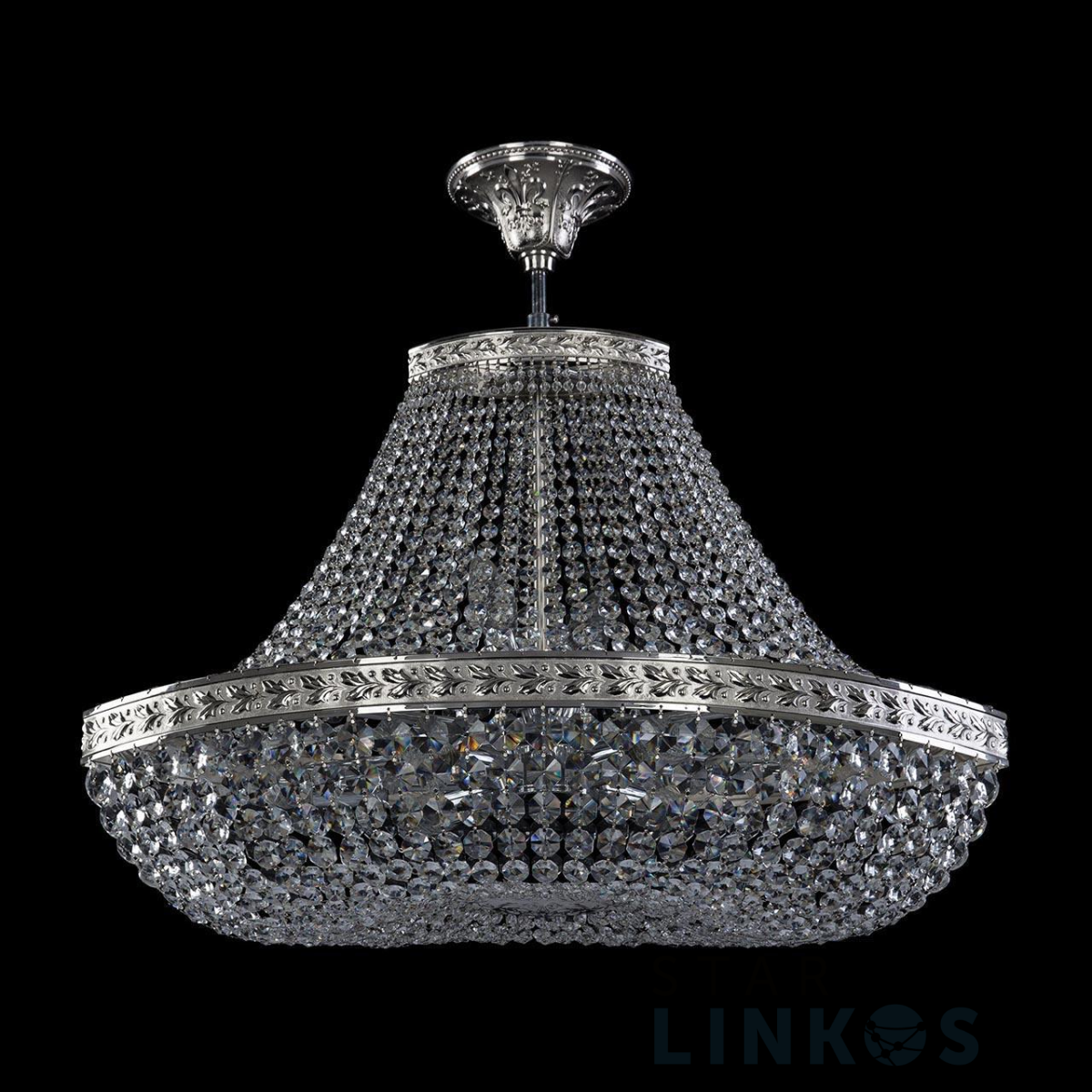 Поставщик рекомендует использовать лампы накаливания с цоколем E14 для освещения площади 26,7 м2. Подвесная люстра Bohemia Ivele 19113/H1/70IV Ni в классическом стиле используется в интерьере гостиной с установкой на потолок.