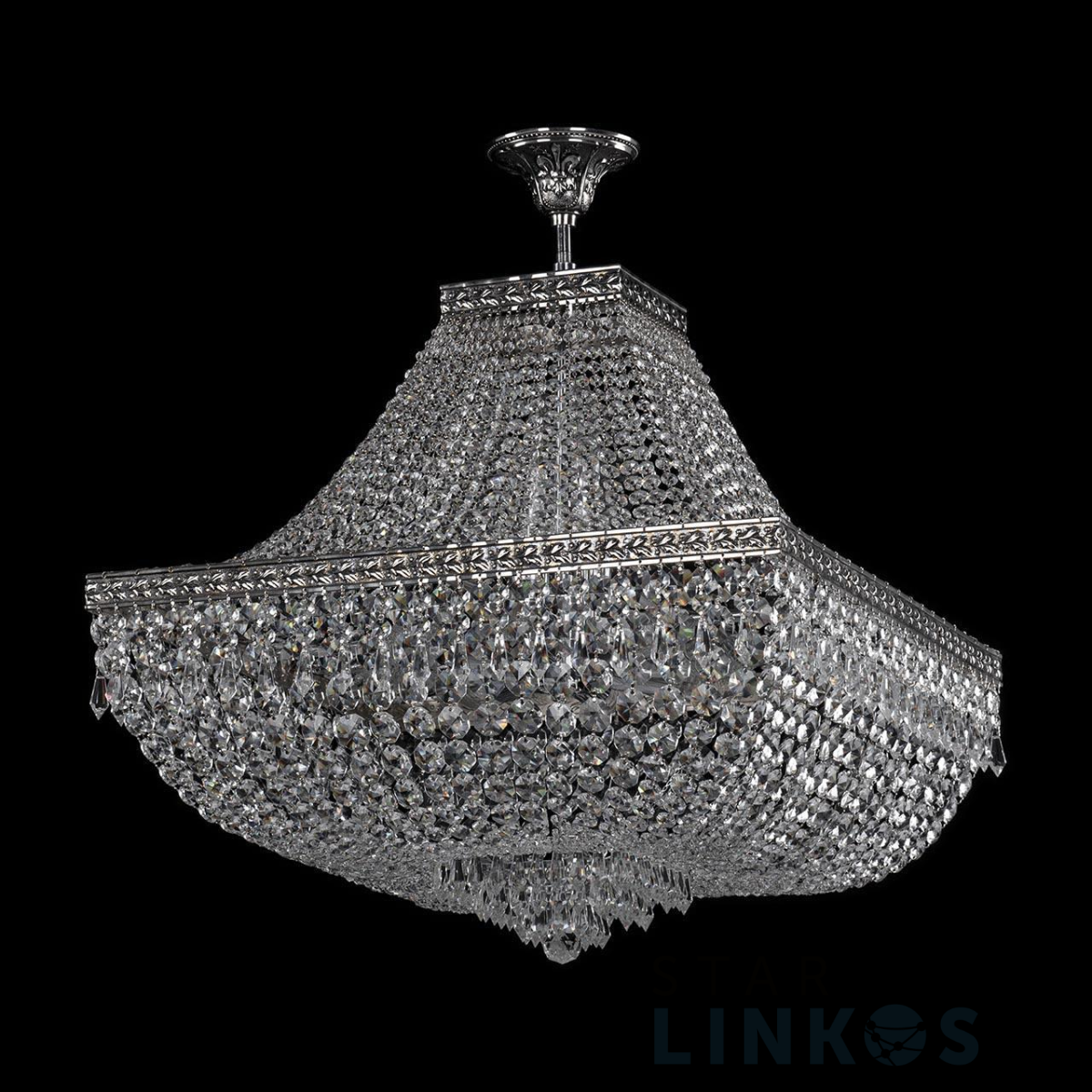 Поставщик рекомендует использовать лампы накаливания с цоколем E14 для освещения площади 26,7 м2. Подвесная люстра Bohemia Ivele 19272/H1/55IV NB в классическом стиле используется в интерьере спальни с установкой на потолок.