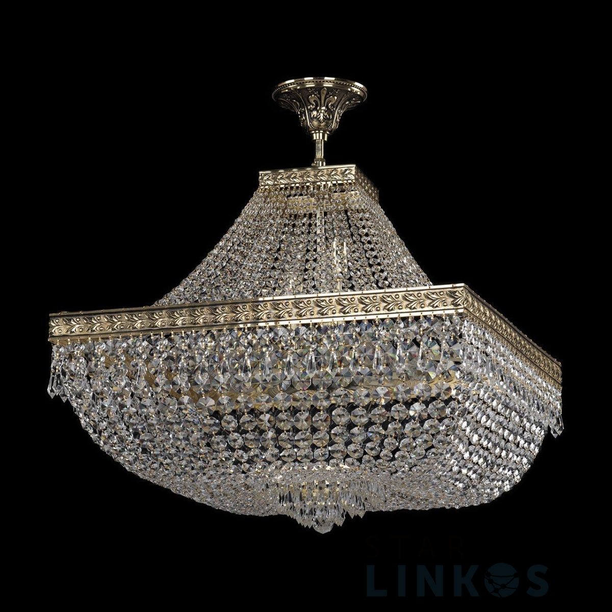 Поставщик рекомендует использовать лампы накаливания с цоколем E14 для освещения площади 33,3 м2. Подвесная люстра Bohemia Ivele 19272/H1/60IV GB в классическом стиле используется в интерьере гостиной с установкой на потолок.