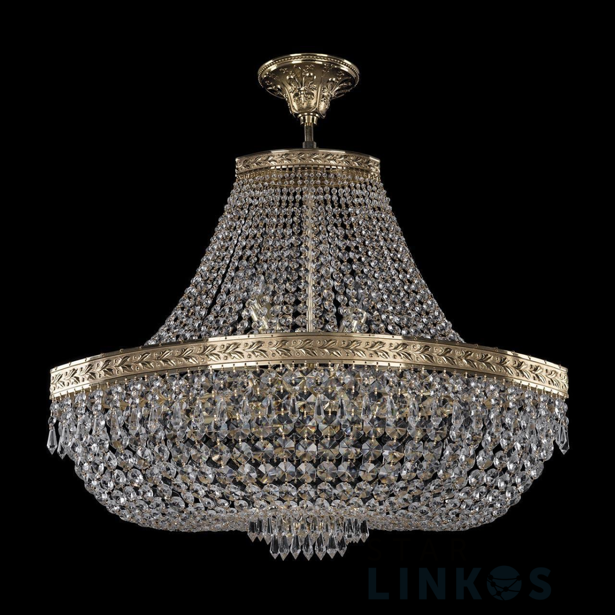 Поставщик рекомендует использовать лампы накаливания с цоколем E14 для освещения площади 26,7 м2. Подвесная люстра Bohemia Ivele 19273/H1/70IV G в классическом стиле используется в интерьере спальни с установкой на потолок.