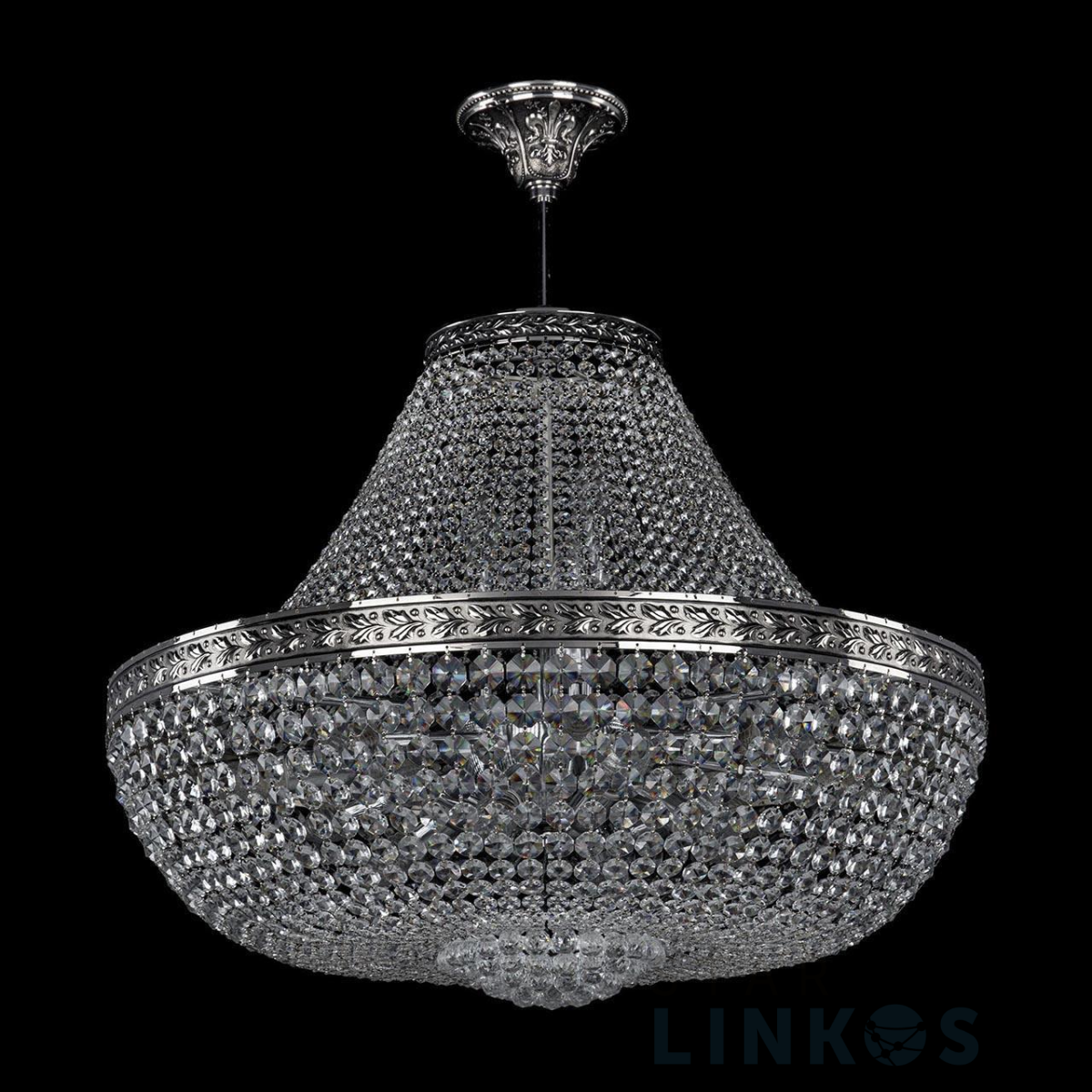 Поставщик рекомендует использовать лампы накаливания с цоколем E14 для освещения площади 48,9 м2. Подвесная люстра Bohemia Ivele 19281/H1/70IV NB в классическом стиле используется в интерьере больших залов с установкой на потолок.