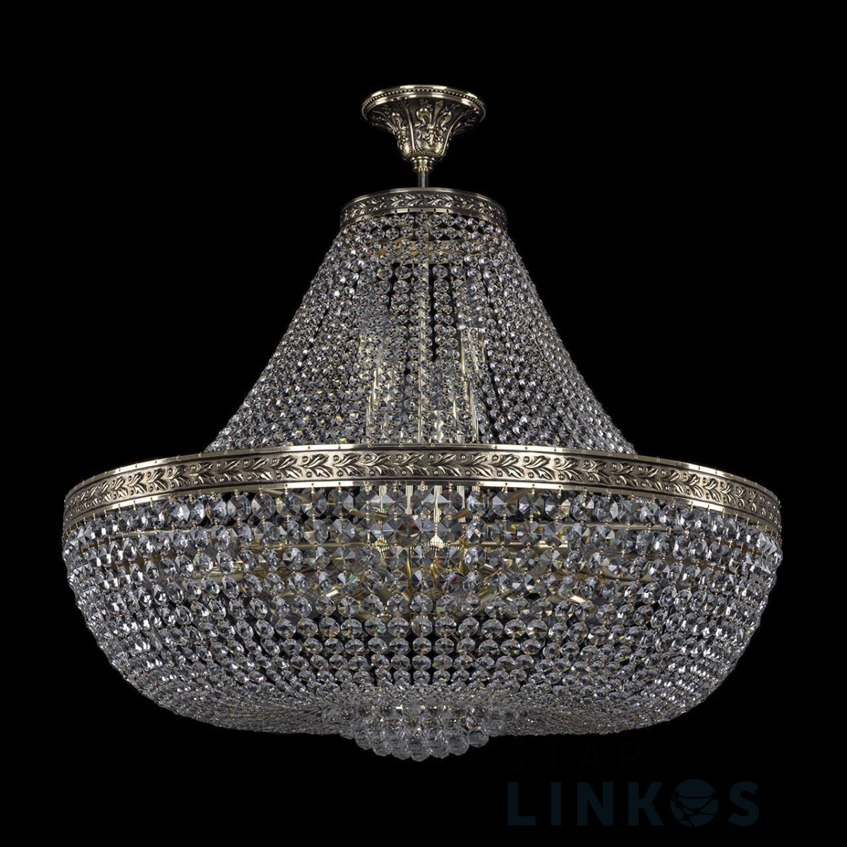 Поставщик рекомендует использовать лампы накаливания с цоколем E14 для освещения площади 48,9 м2. Подвесная люстра Bohemia Ivele 19281/H1/80IV GB в классическом стиле используется в интерьере больших залов с установкой на потолок.