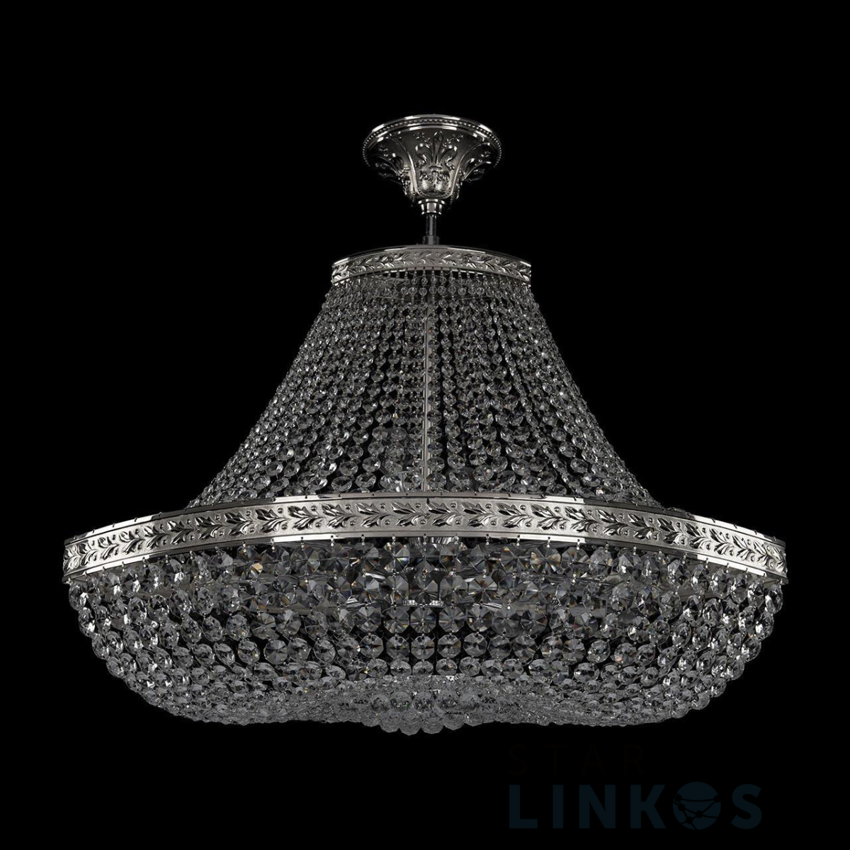 Поставщик рекомендует использовать лампы накаливания с цоколем E14 для освещения площади 26,7 м2. Подвесная люстра Bohemia Ivele 19283/H1/70IV Ni в классическом стиле используется в интерьере спальни с установкой на потолок.