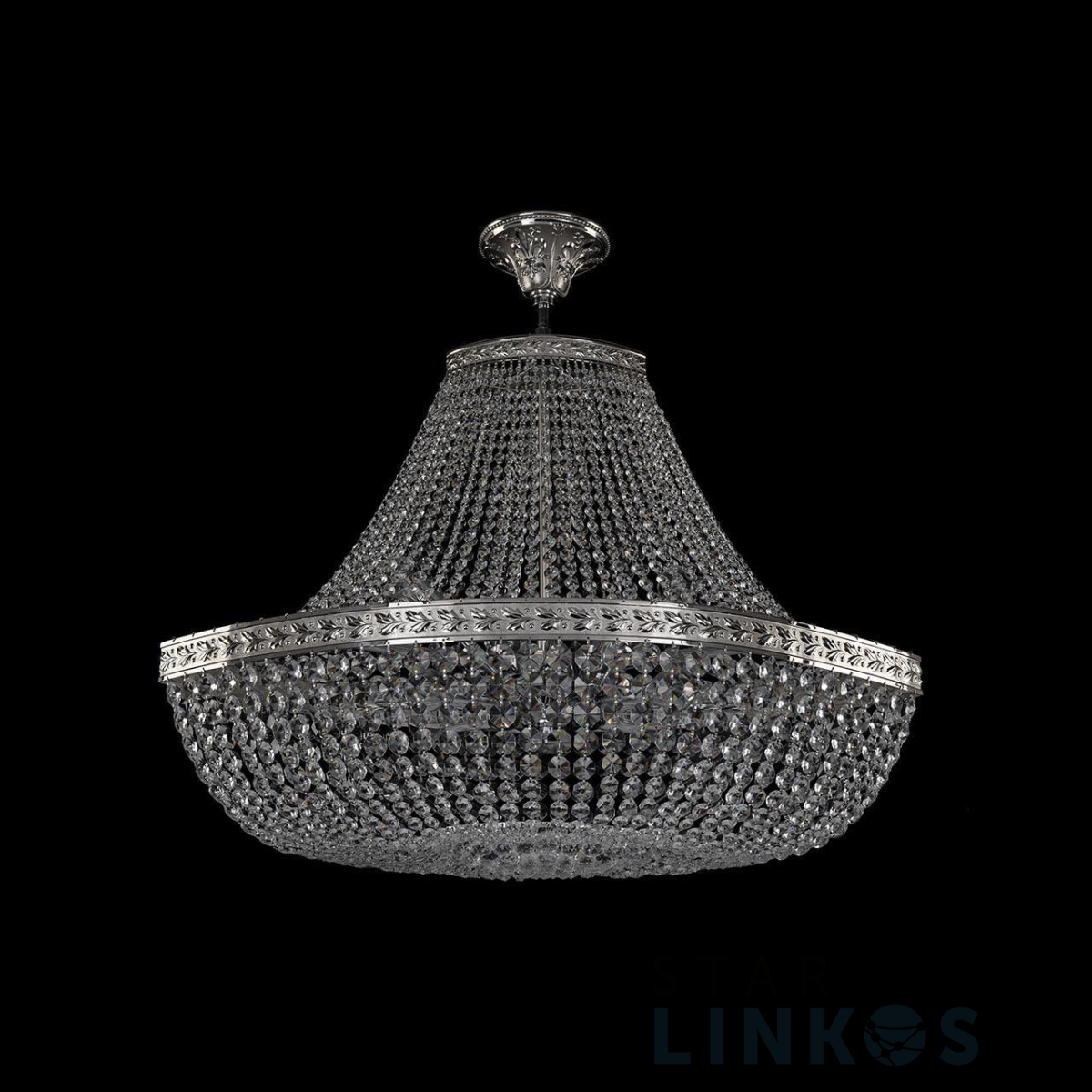 Поставщик рекомендует использовать лампы накаливания с цоколем E14 для освещения площади 26,7 м2. Подвесная люстра Bohemia Ivele 19283/H1/80IV Ni в классическом стиле используется в интерьере спальни с установкой на потолок.