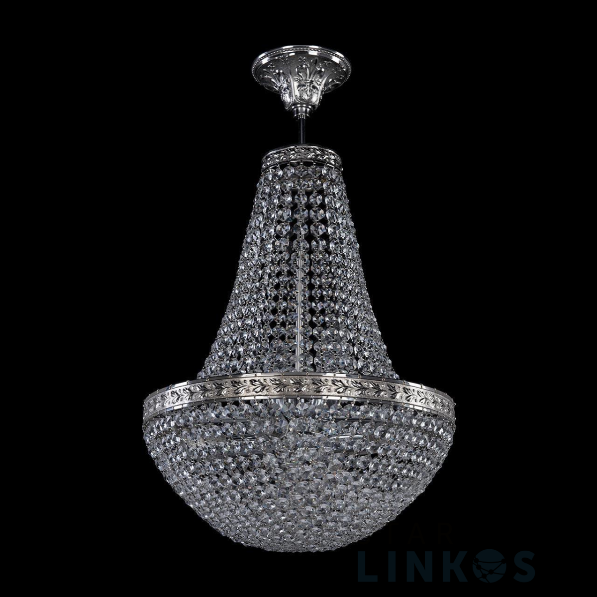 Поставщик рекомендует использовать лампы накаливания с цоколем E14 для освещения площади 13,3 м2. Подвесная люстра Bohemia Ivele 19321/H2/35IV Ni в классическом стиле используется в интерьере спальни с установкой на потолок.