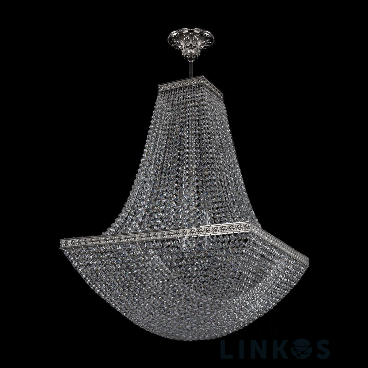 Поставщик рекомендует использовать лампы накаливания с цоколем E14 для освещения площади 26,7 м2. Подвесная люстра Bohemia Ivele 19322/H2/55IV Ni в классическом стиле используется в интерьере гостиной с установкой на потолок.