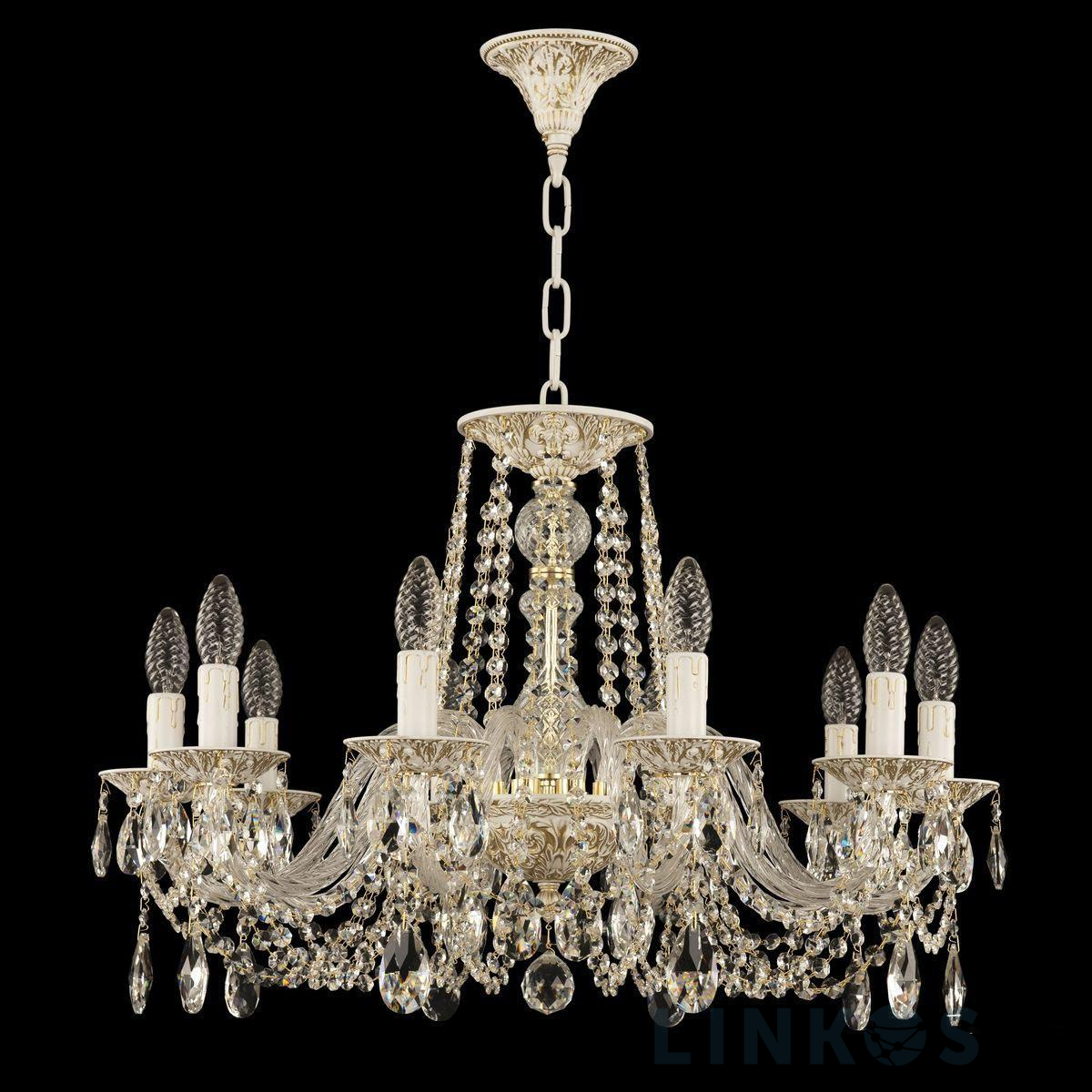 Поставщик рекомендует использовать лампы накаливания с цоколем E14. Подвесная люстра Bohemia Ivele AL16302/10/240 WMG в классическом стиле используется в интерьере гостиной с установкой на потолок.
