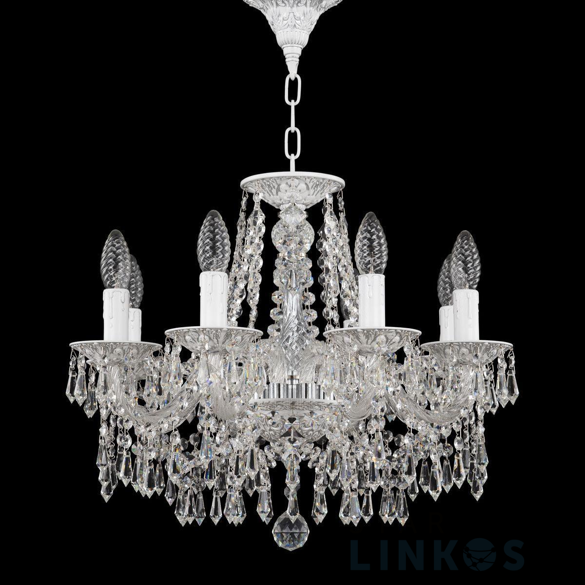 Поставщик рекомендует использовать лампы накаливания с цоколем E14. Подвесная люстра Bohemia Ivele AL16303/8/160 WMN в классическом стиле используется в интерьере гостиной с установкой на потолок.