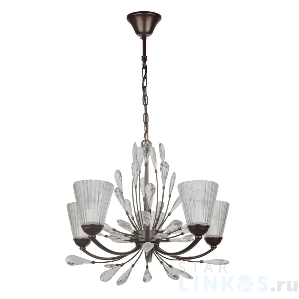 Поставщик рекомендует использовать лампы накаливания с цоколем E27 для освещения площади 10 м2. Подвесная люстра Chiaro Летиция 343011805 в используется в интерьере спальни с установкой на потолок.