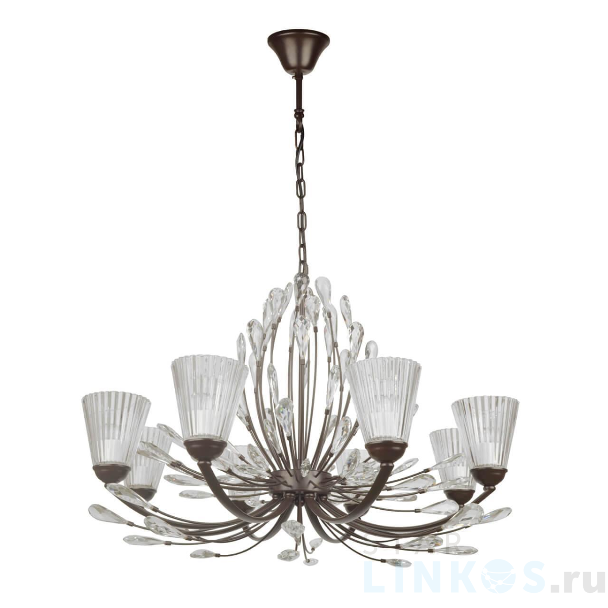 Поставщик рекомендует использовать лампы накаливания с цоколем E27 для освещения площади 16 м2. Подвесная люстра Chiaro Летиция 343012008 в используется в интерьере гостиной с установкой на потолок.