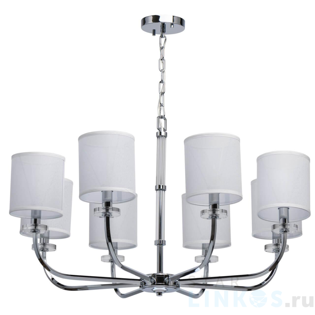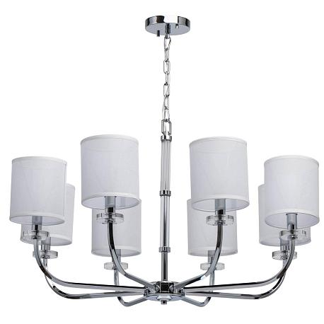 Поставщик рекомендует использовать лампы накаливания с цоколем E14 для освещения площади 26,7 м2. Подвесная люстра Chiaro Палермо 386017008 в современном стиле используется в интерьере гостиной с установкой на потолок.