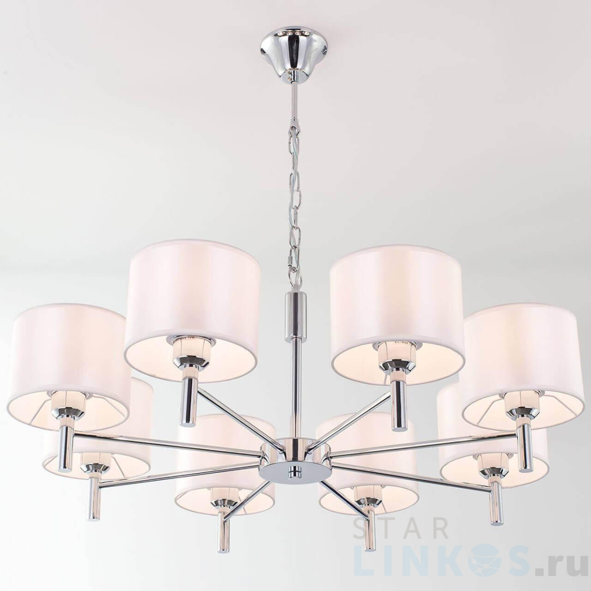 Поставщик рекомендует использовать лампы накаливания с цоколем E27 для освещения площади 25 м2. Подвесная люстра Citilux Аврора CL463180 в используется в интерьере гостиной с установкой на потолок.