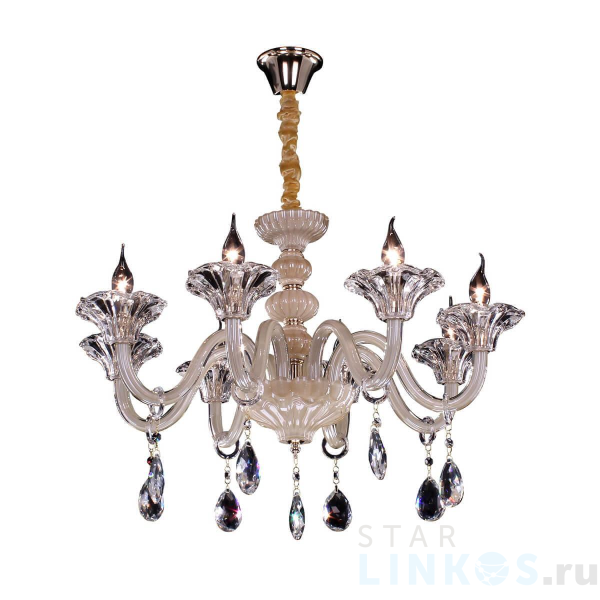 Поставщик рекомендует использовать лампы накаливания с цоколем E14 для освещения площади 26,7 м2. Подвесная люстра Citilux Ирида CL351181 в классическом стиле используется в интерьере гостиной с установкой на потолок.