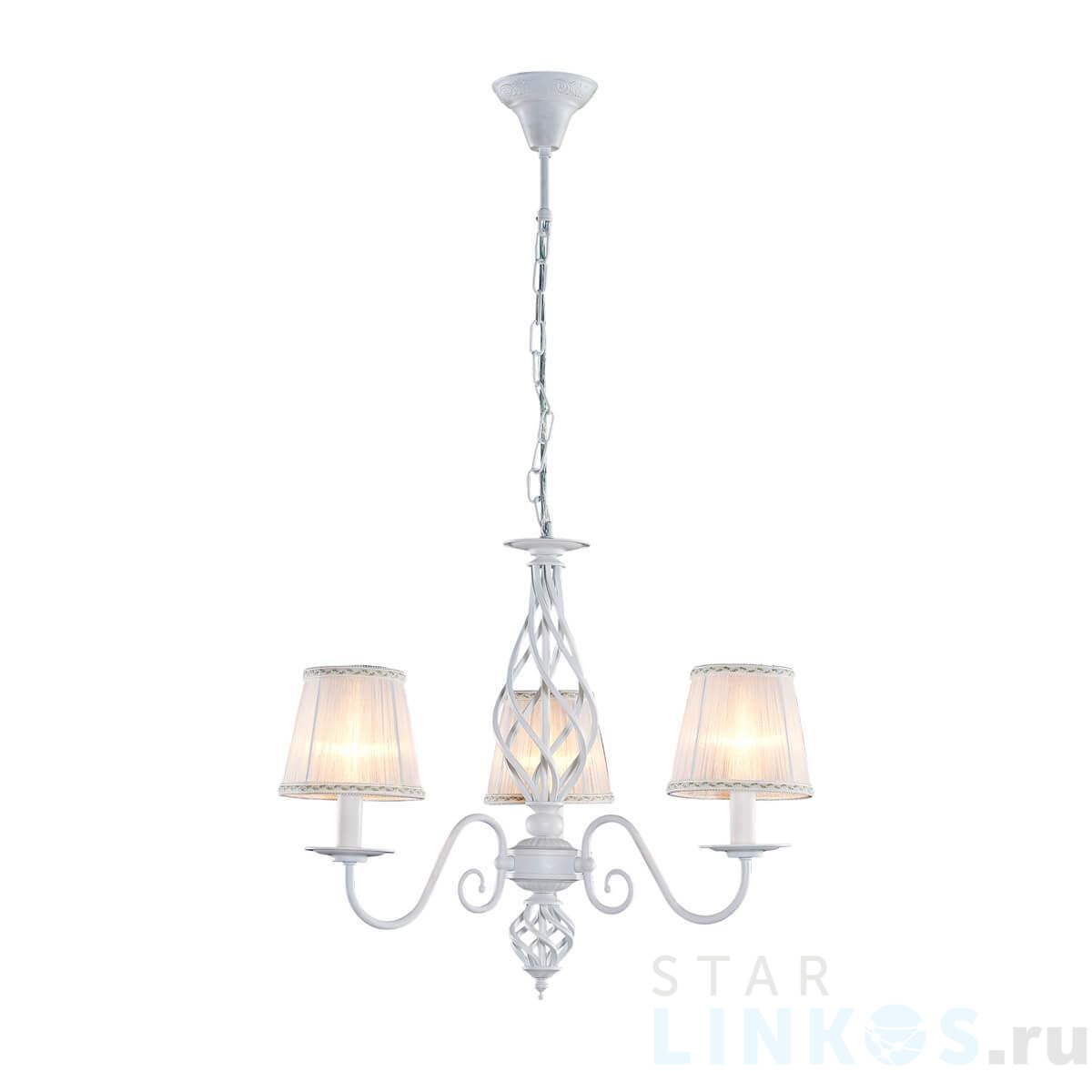 Поставщик рекомендует использовать лампы накаливания с цоколем E14 для освещения площади 10 м2. Подвесная люстра Citilux Ровена CL427130 в стиле прованс используется в интерьере спальни с установкой на потолок.