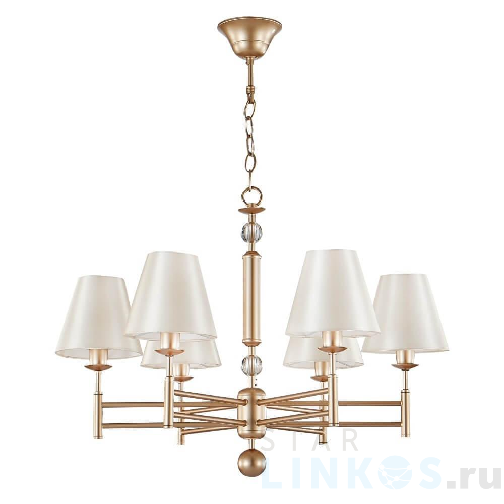 Поставщик рекомендует использовать лампы накаливания с цоколем E14. Подвесная люстра Crystal Lux FLAVIO SP6 GOLD в используется в интерьере гостиной с установкой на потолок.