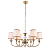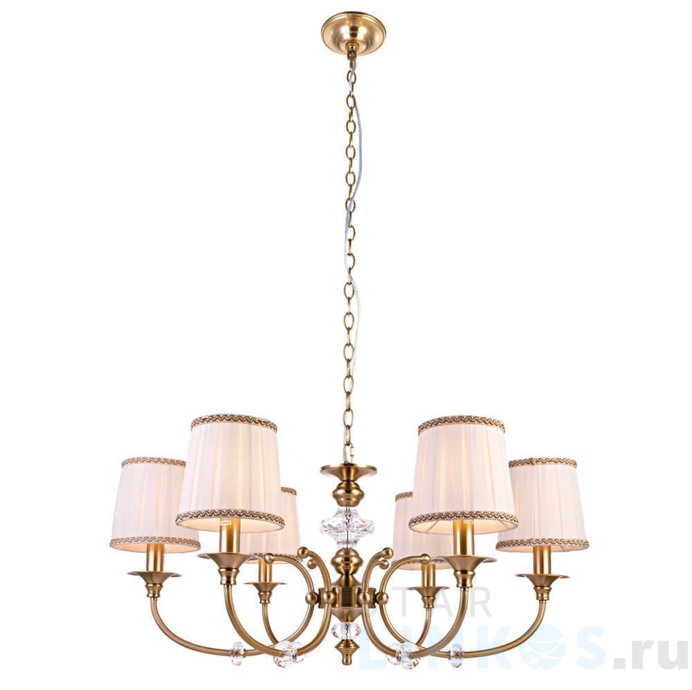 Поставщик рекомендует использовать лампы накаливания с цоколем E14 для освещения площади 20 м2. Подвесная люстра Crystal Lux Iridium SP6 в классическом стиле используется в интерьере спальни с установкой на потолок.