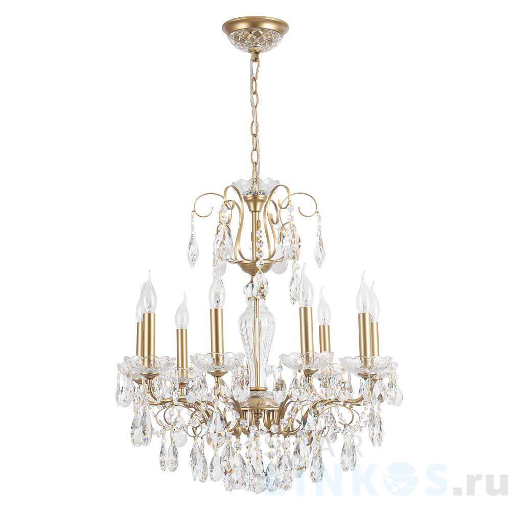 Поставщик рекомендует использовать лампы накаливания с цоколем E14. Подвесная люстра Crystal Lux Montana SP9 в классическом стиле используется в интерьере спальни с установкой на потолок.