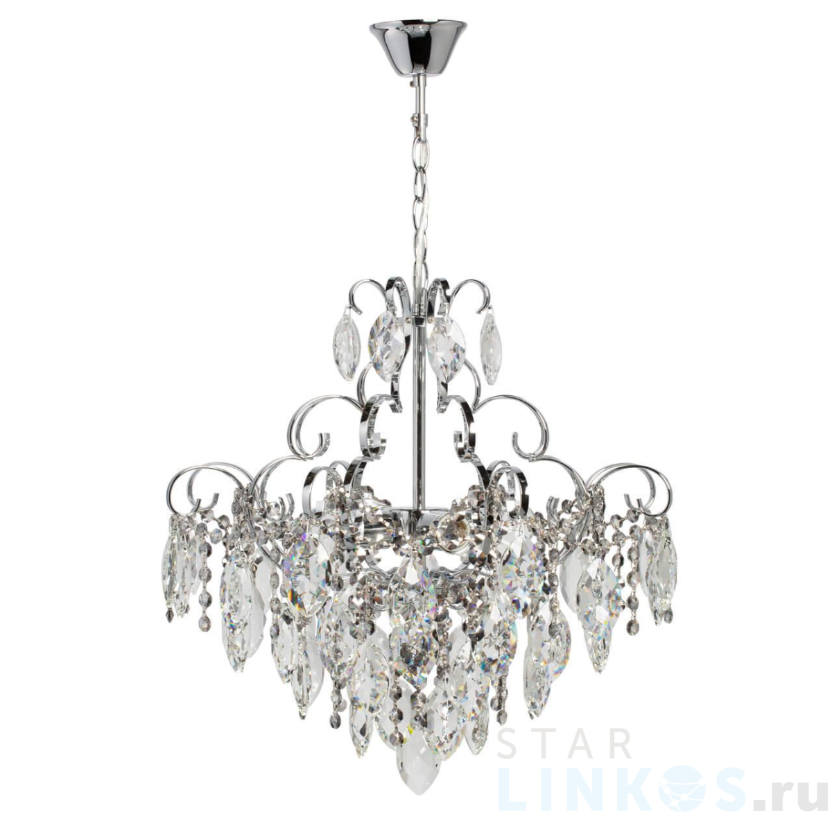Поставщик рекомендует использовать лампы накаливания с цоколем E27 для освещения площади 13,3 м2. Подвесная люстра De Markt City Бриз 111010704 в классическом стиле используется в интерьере спальни с установкой на потолок.