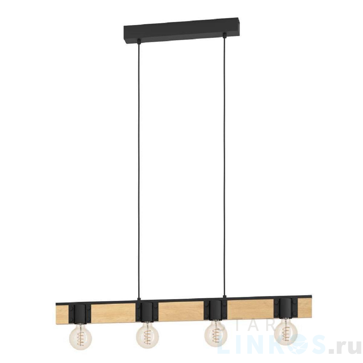Поставщик рекомендует использовать лампы накаливания с цоколем E27. Подвесная люстра Eglo Bailrigg 43902 в стиле лофт используется в интерьере гостиной с установкой на потолок.