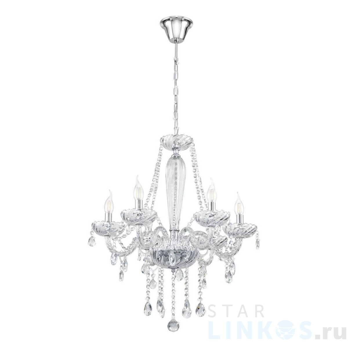 Поставщик рекомендует использовать лампы накаливания с цоколем E14 для освещения площади 13,3 м2. Подвесная люстра Eglo Basilano 1 39099 в классическом стиле используется в интерьере спальни с установкой на потолок.