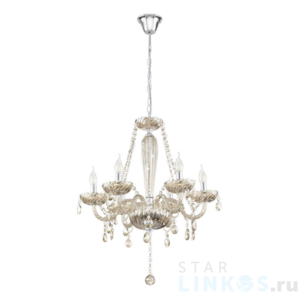 Поставщик рекомендует использовать лампы накаливания с цоколем E14 для освещения площади 13,3 м2. Подвесная люстра Eglo Basilano 39092 в классическом стиле используется в интерьере спальни с установкой на потолок.