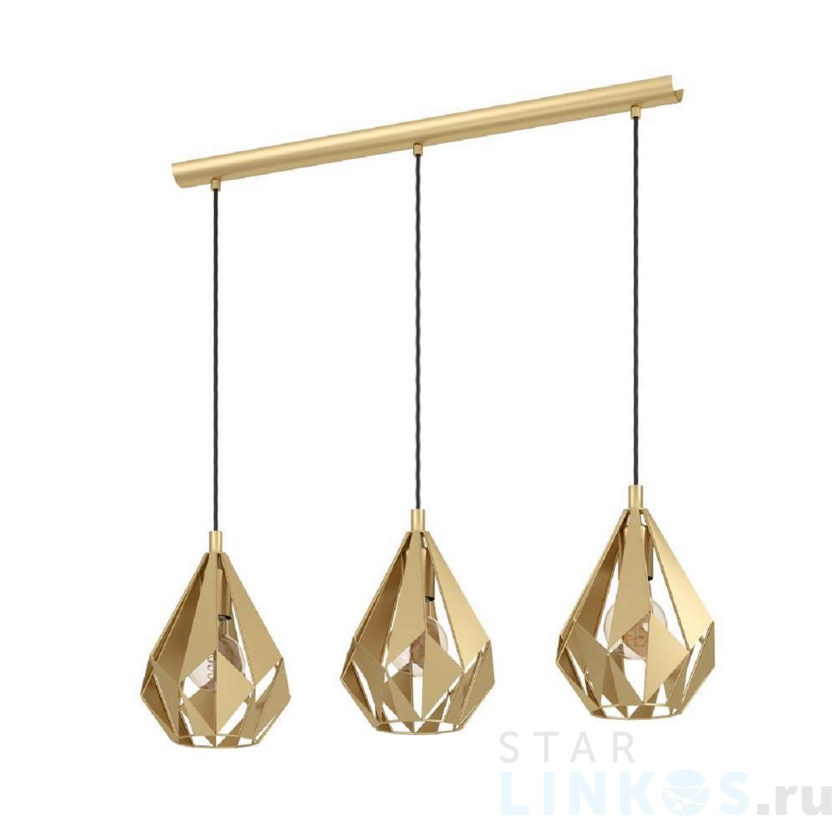 Поставщик рекомендует использовать лампы накаливания с цоколем E27. Подвесная люстра Eglo Carlton 43909 в стиле лофт используется в интерьере гостиной с установкой на потолок.