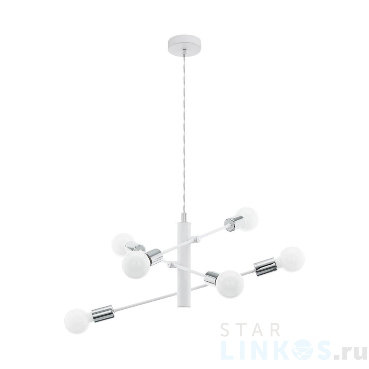Поставщик рекомендует использовать лампы накаливания с цоколем E27 для освещения площади 20 м2. Подвесная люстра Eglo Gradoli 98016 в используется в интерьере гостиной с установкой на потолок.