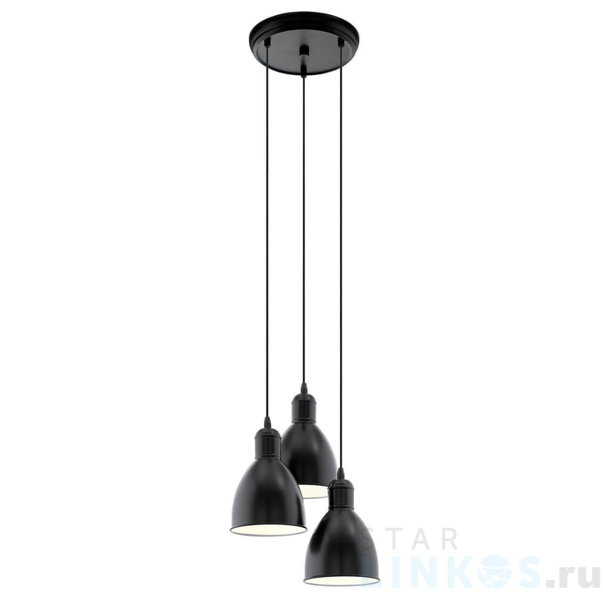 Поставщик рекомендует использовать лампы накаливания с цоколем E27 для освещения площади 10 м2. Подвесная люстра Eglo Priddy 49465 в используется в интерьере кухни с установкой на потолок.