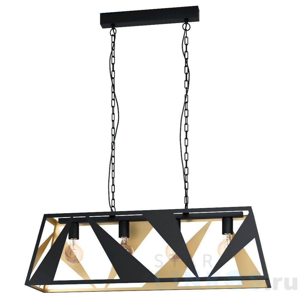 Поставщик рекомендует использовать лампы накаливания с цоколем E27. Подвесная люстра Eglo Tabloncito 39904 в стиле лофт используется в интерьере кухни с установкой на потолок.