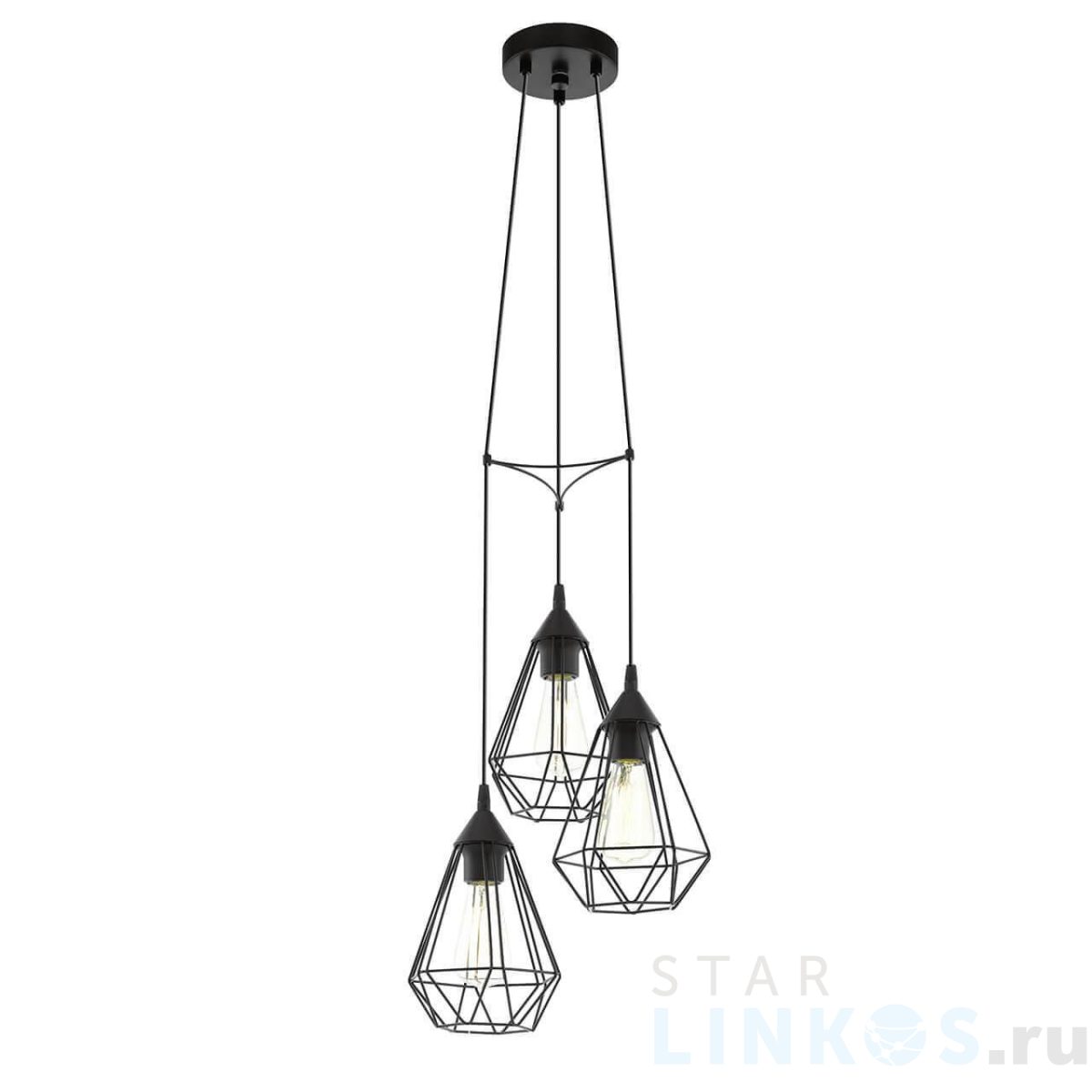 Поставщик рекомендует использовать лампы накаливания с цоколем E27 для освещения площади 10 м2. Подвесная люстра Eglo Tarbes 94191 в стиле лофт используется в интерьере кафе и ресторанов с установкой на потолок.