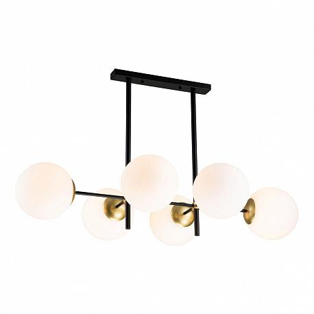 Поставщик рекомендует использовать лампы накаливания с цоколем E27 для освещения площади 13,3 м2. Подвесная люстра Escada 1163/6S в современном стиле используется в интерьере спальни с установкой на потолок.
