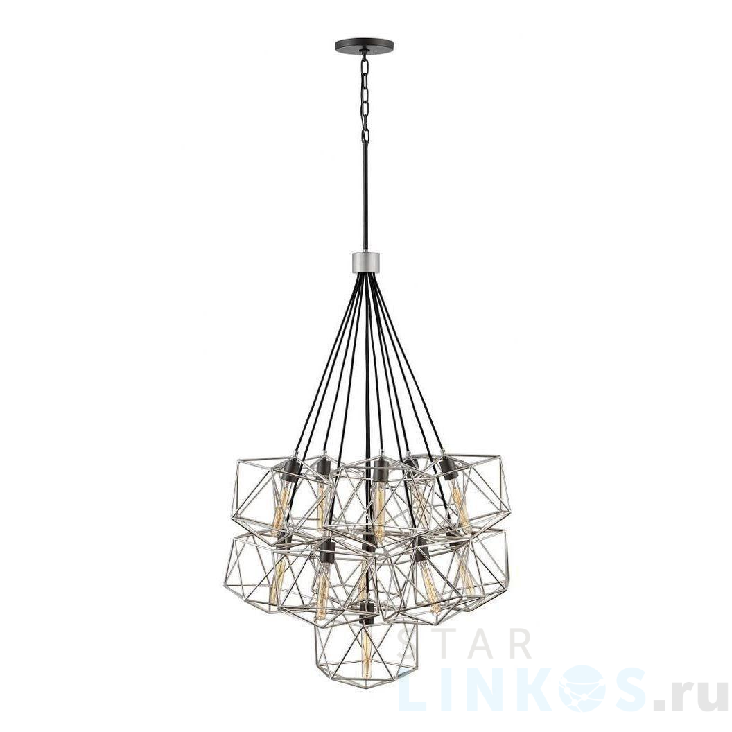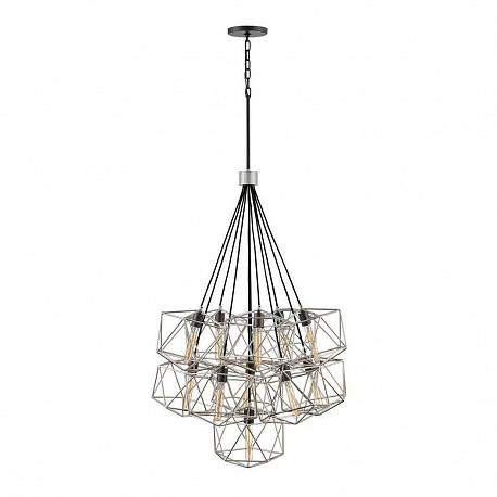 Поставщик рекомендует использовать лампы накаливания с цоколем E27 для освещения площади 30 м2. Подвесная люстра Escada 1165/14S в стиле лофт используется в интерьере гостиной с установкой на потолок.