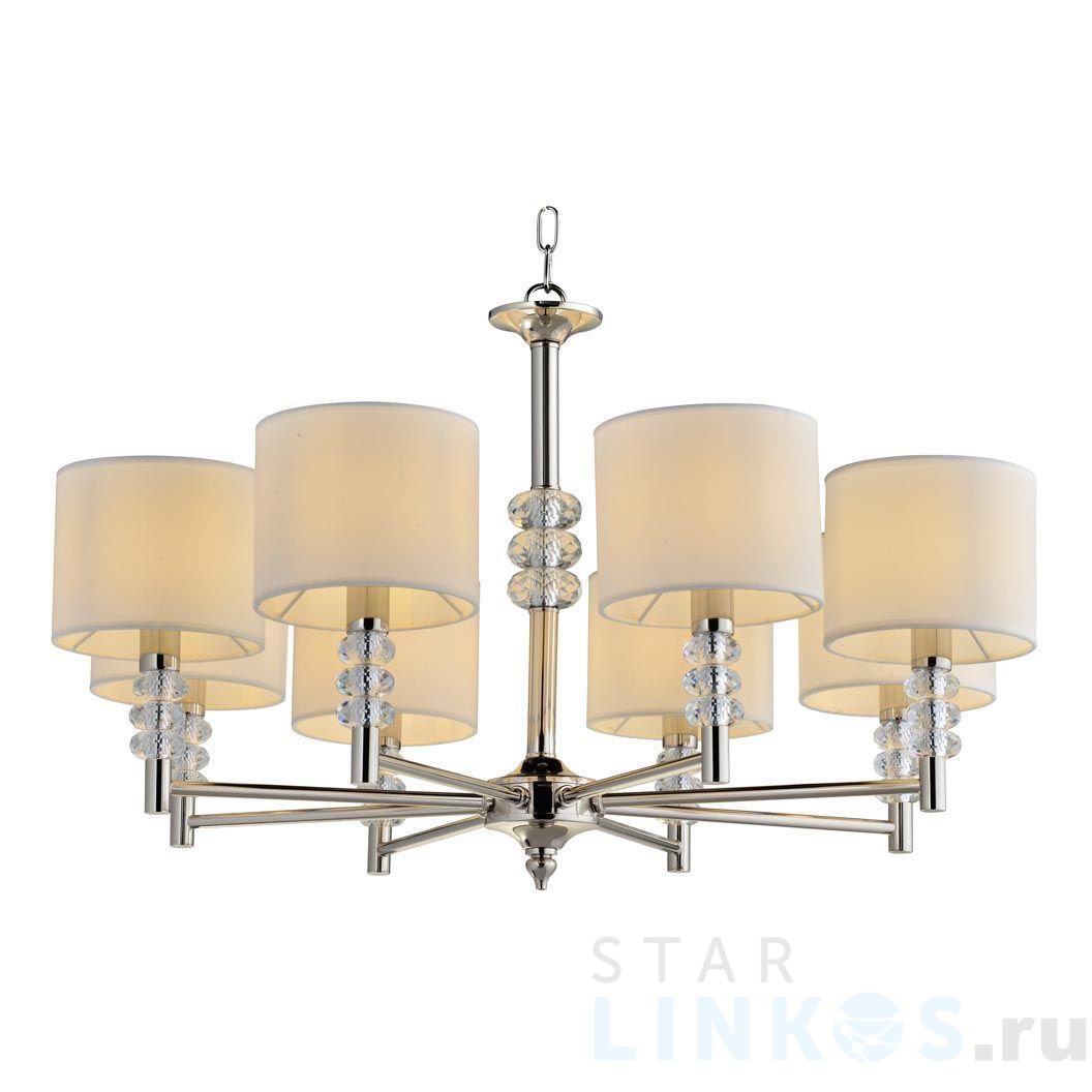 Поставщик рекомендует использовать лампы накаливания с цоколем E14 для освещения площади 17,8 м2. Подвесная люстра Escada 1167/8S в используется в интерьере гостиной с установкой на потолок.