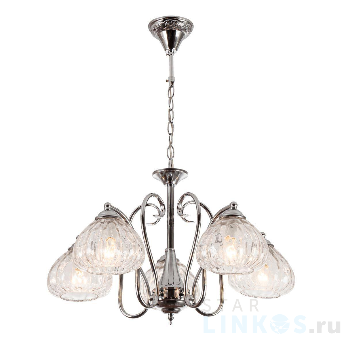 Поставщик рекомендует использовать лампы накаливания с цоколем E14 для освещения площади 11,1 м2. Подвесная люстра Escada 336/5P в используется в интерьере кухни с установкой на потолок.