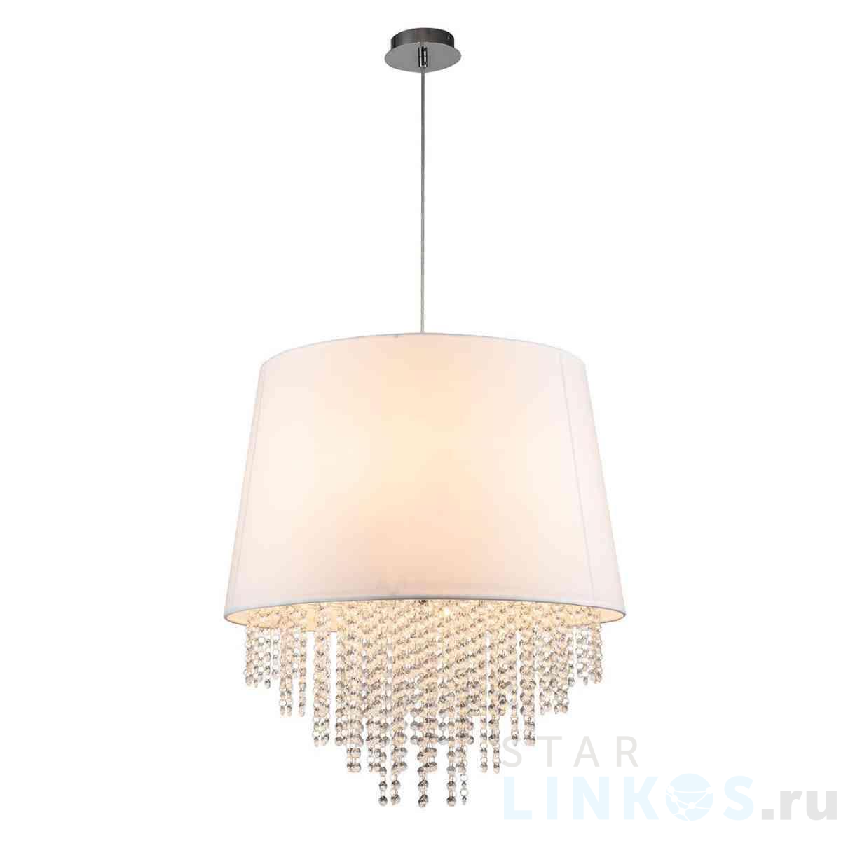 Поставщик рекомендует использовать лампы накаливания с цоколем E27 для освещения площади 18 м2. Подвесная люстра Escada 652/5S White в используется в интерьере гостиной с установкой на потолок.
