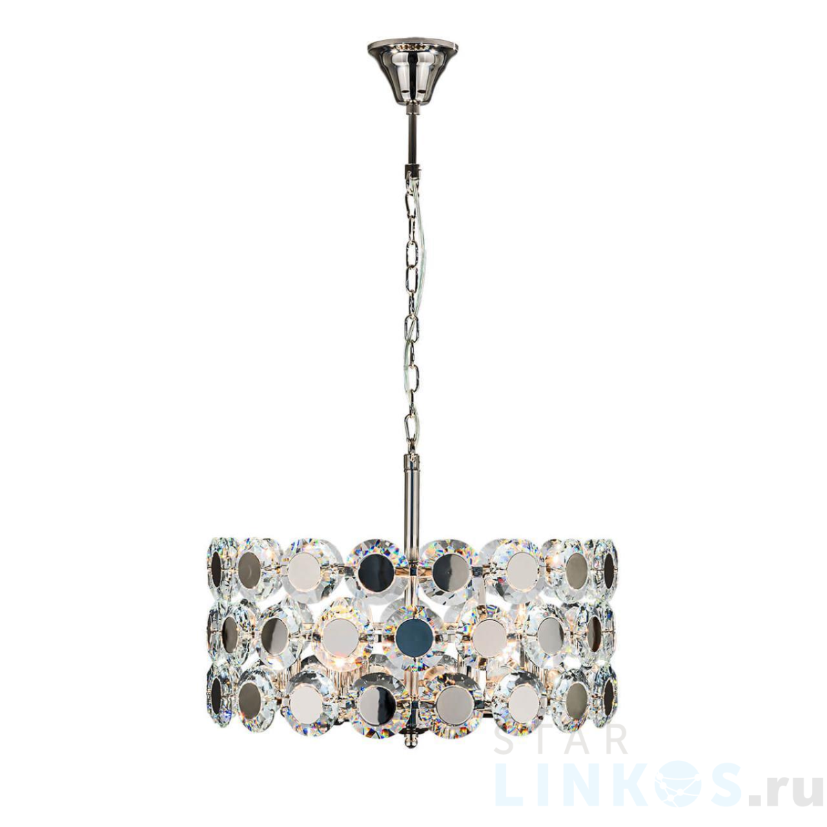 Поставщик рекомендует использовать лампы накаливания с цоколем E14 для освещения площади 12 м2. Подвесная люстра Escada 664/6S в используется в интерьере спальни с установкой на потолок.