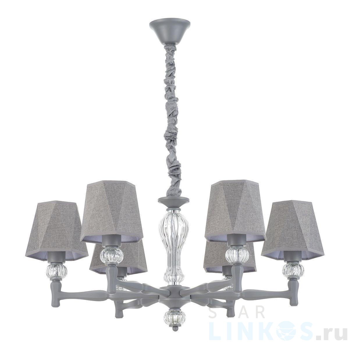 Поставщик рекомендует использовать лампы накаливания с цоколем E27 для освещения площади 22 м2. Подвесная люстра Escada 672/6S Grey в используется в интерьере гостиной с установкой на потолок.