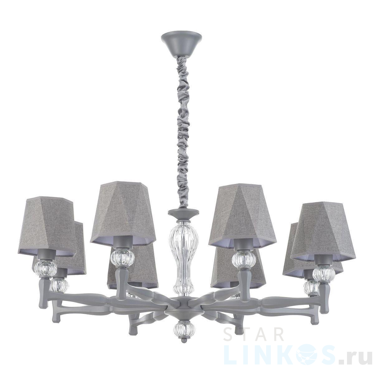 Поставщик рекомендует использовать лампы накаливания с цоколем E27 для освещения площади 30 м2. Подвесная люстра Escada 672/8S Grey в используется в интерьере гостиной с установкой на потолок.