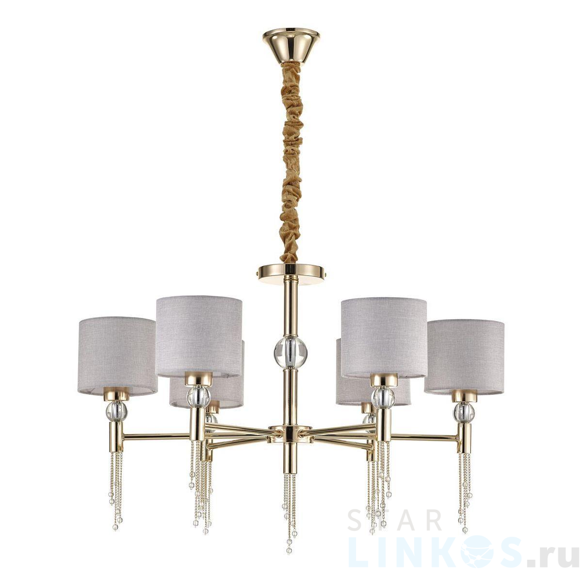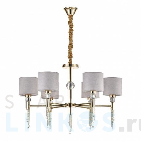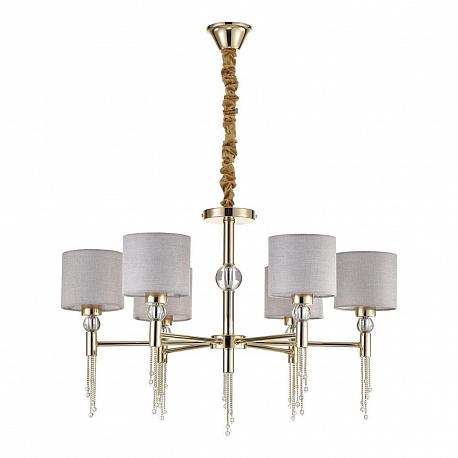 Поставщик рекомендует использовать лампы накаливания с цоколем E27 для освещения площади 20 м2. Подвесная люстра Escada 690/6S в стиле арт-деко используется в интерьере гостиной с установкой на потолок.
