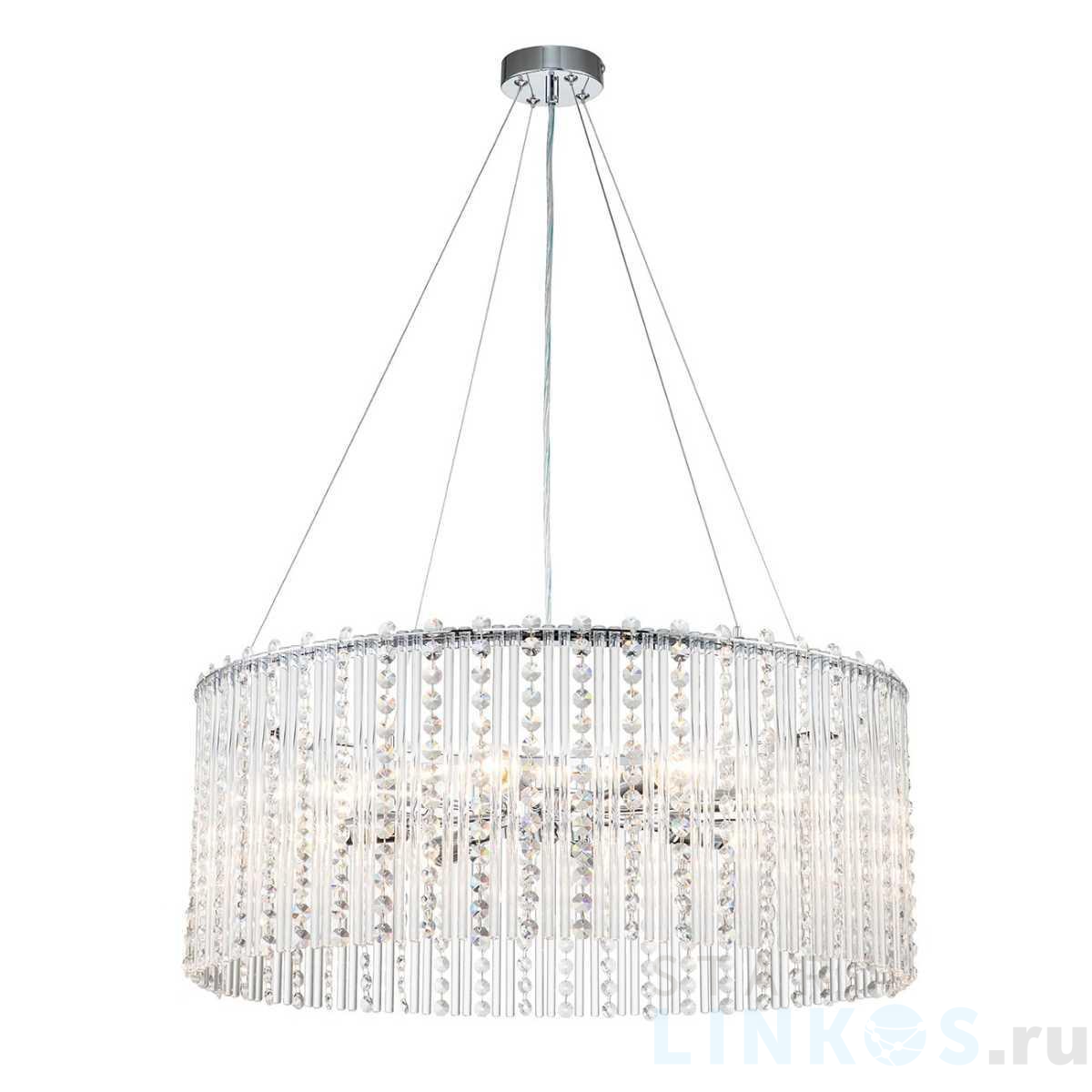 Поставщик рекомендует использовать лампы накаливания с цоколем E14 для освещения площади 30 м2. Подвесная люстра Escada ASTLEY 2104/8S в используется в интерьере гостиной с установкой на потолок.