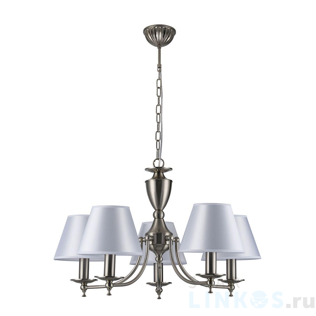 Поставщик рекомендует использовать лампы накаливания с цоколем E14 для освещения площади 10 м2. Подвесная люстра Escada Bolero 1144/5PL в классическом стиле используется в интерьере спальни с установкой на потолок.