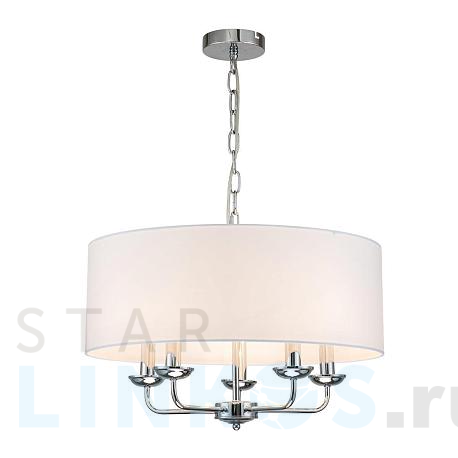 Поставщик рекомендует использовать лампы накаливания с цоколем E14 для освещения площади 10 м2. Подвесная люстра Escada Bovilla 10175/5PL в используется в интерьере гостиной с установкой на потолок.