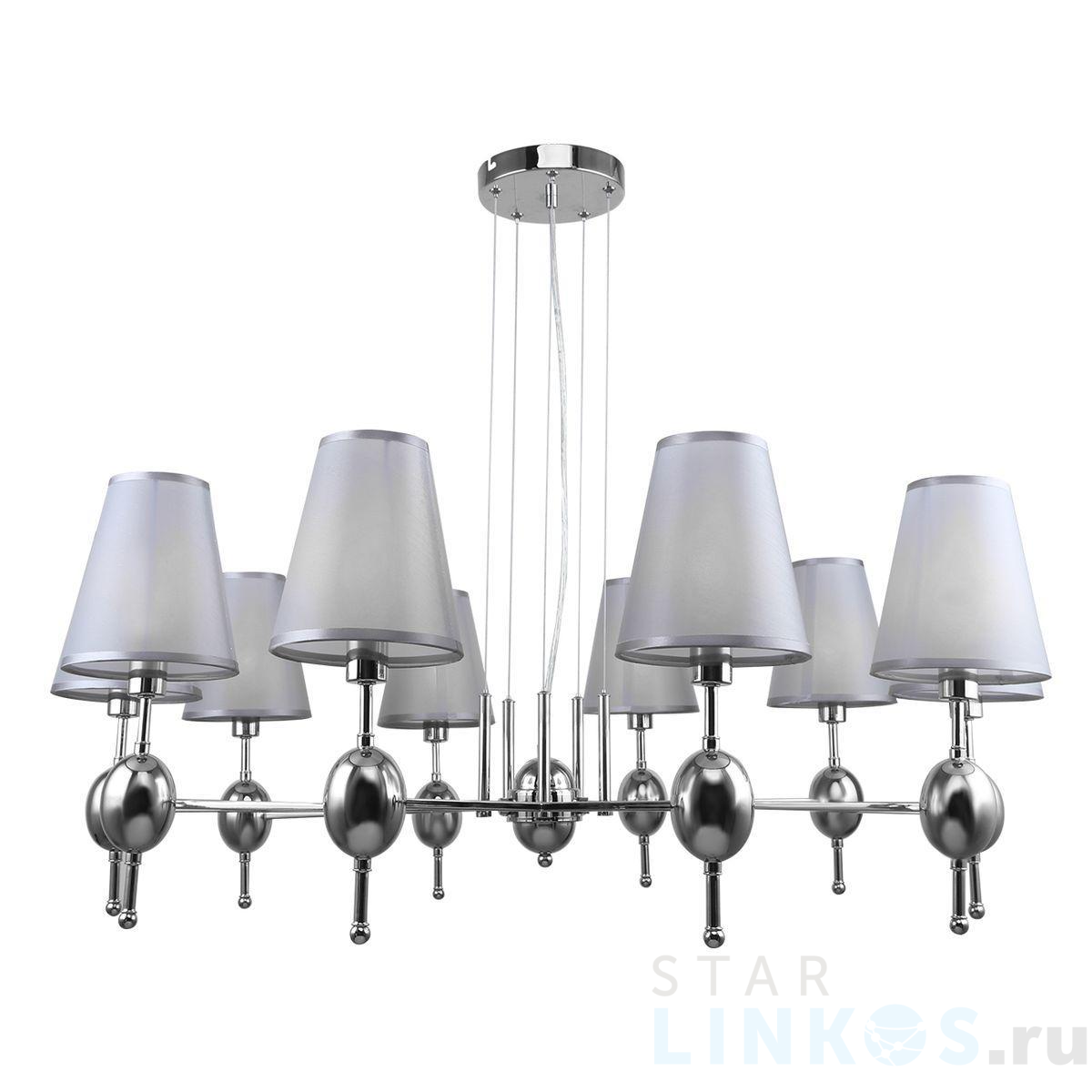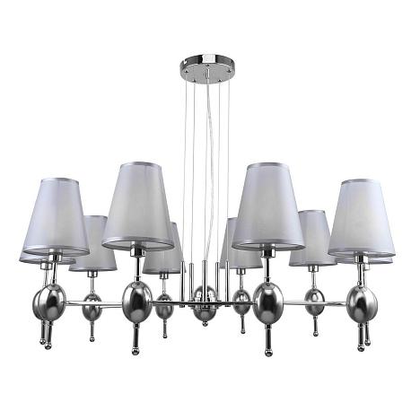 Поставщик рекомендует использовать лампы накаливания с цоколем E14 для освещения площади 25 м2. Подвесная люстра Escada Elegy 2106/10S в используется в интерьере гостиной с установкой на потолок.